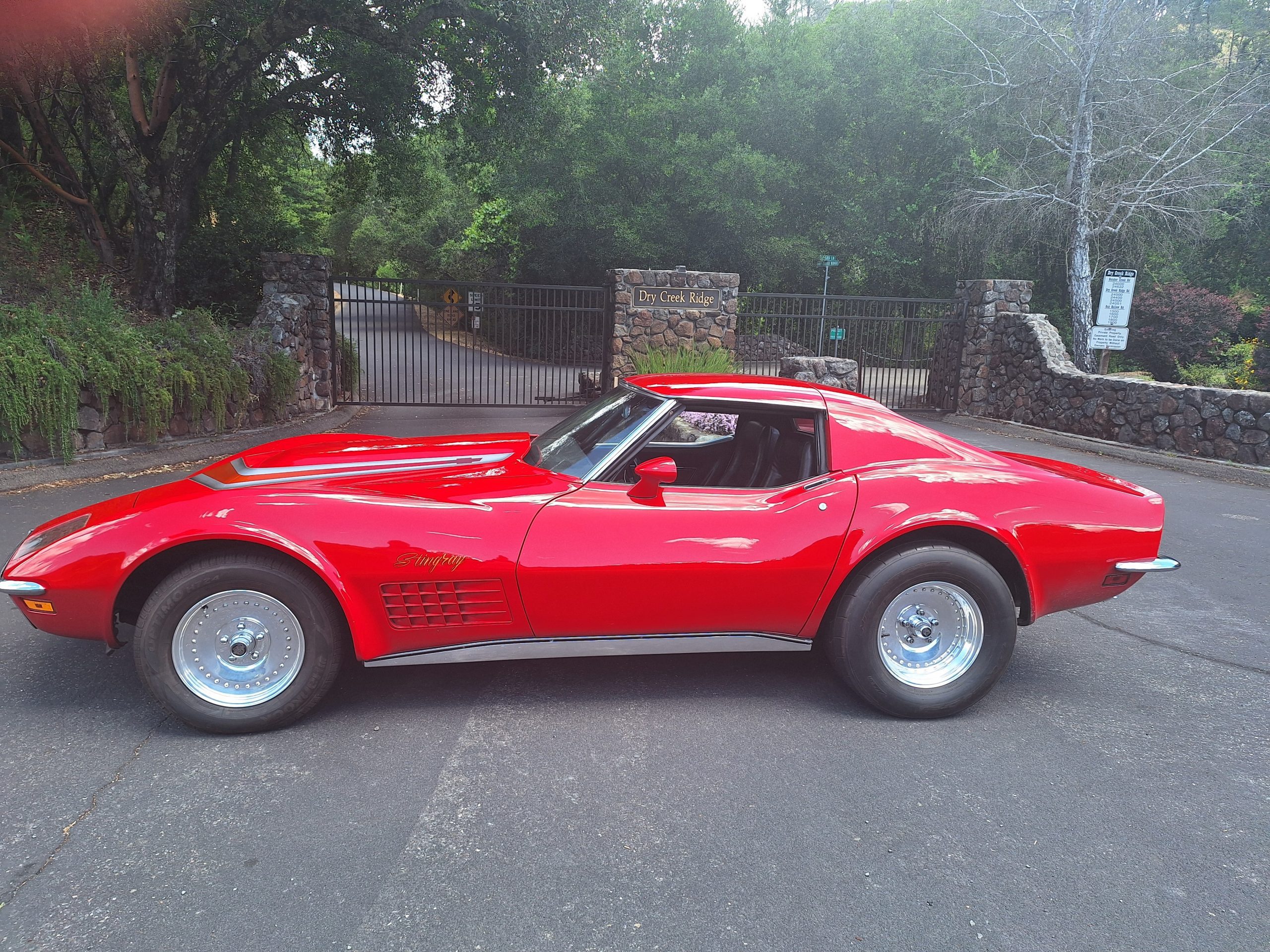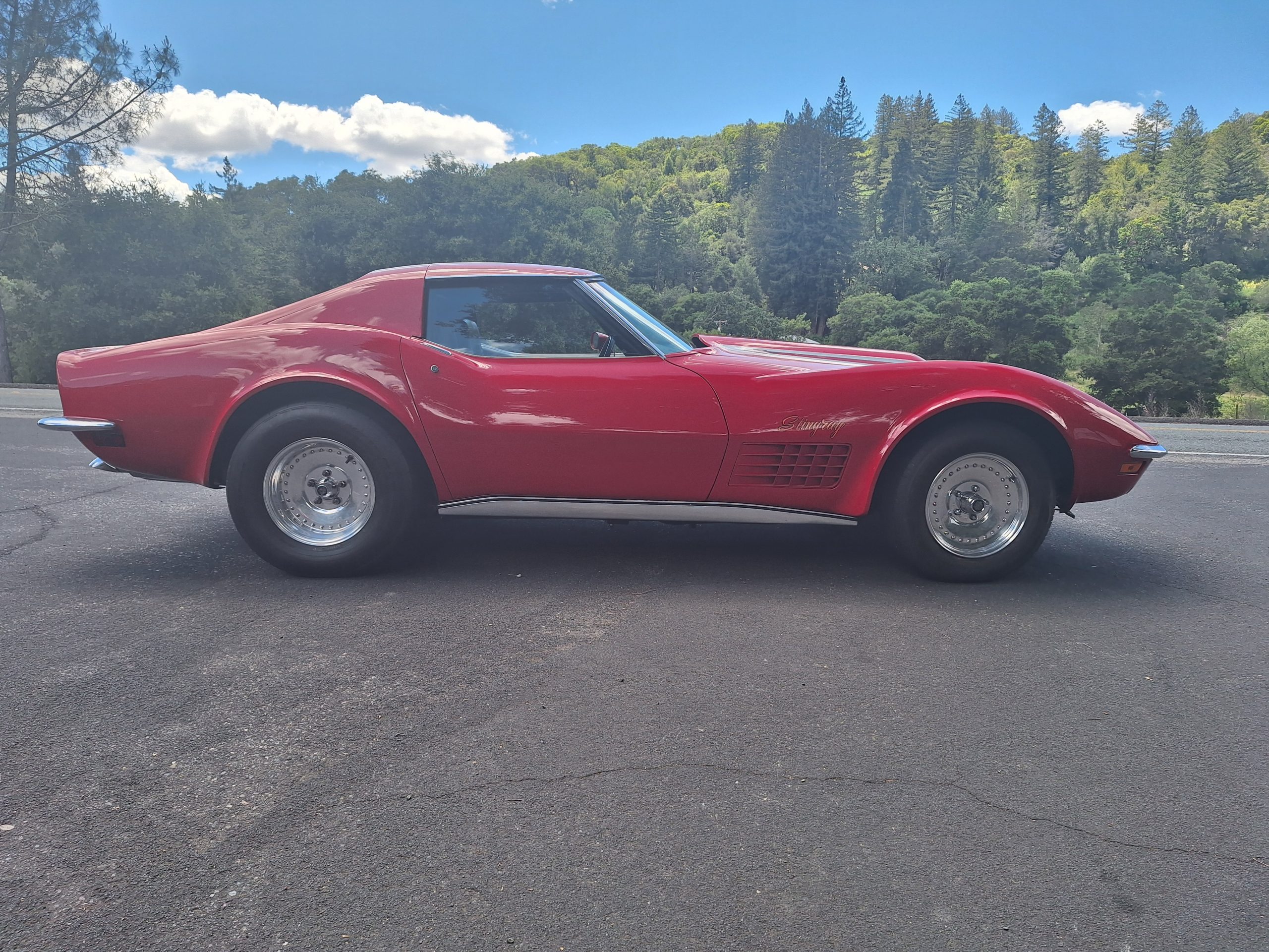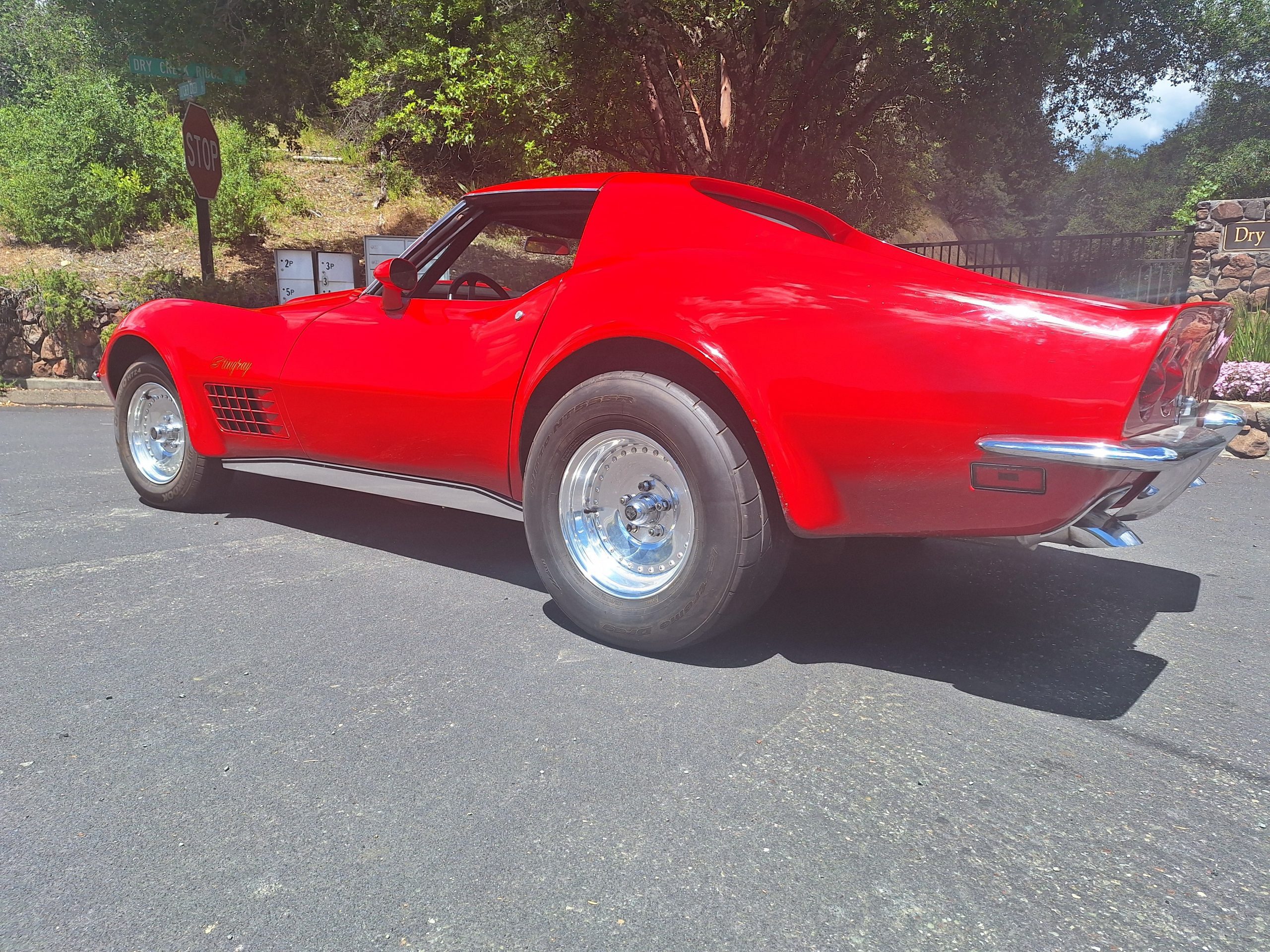 BEAUTIFUL CORVETTE! Built to THRILL! NEW 377" small block with full manual Mike's Transmission turbo 400 and hi stall converter. Engine is FRESH with all NEW AFR 227/235 heads with Jessel shaft rockers, ARP head studs and fasteners, Bullet solid roller cam, lifter bores bushed to.904 containing NEW Comp Cams roller tappets, Ross pistons, Eagle H beam rods, Eagle forged crank, Comp Cams belt drive, vacuum pump, new lash caps and Manton push rods, Stef's oil pan, electric water pump, Holly Strip Dominator, MSD digital 6AL, MSD distributor. Just spent $2200 on custom hand built headers. Brand NEW 3.73 Posi traction in a Tom's 12 bolt Independent rear suspension. NEW front brake calipers, pads, brake hoses, NEW Global West tubular A-arms, polished Centerlines, NEW gas tank, filler neck and sender. Vehicle has a roll cage (with removable side bars) and harnesses. Comes with 2 extra gear sets, spool, and fuel cell. Rev limiter and 2 stage electronics included but not installed. Car is FUN to drive and a real head turner!. An amazing one of a kind Corvette you will enjoy driving. Very safe and FAST. Licensed and street legal.>>> SEE IT RUN HERE: https://youtube.com/shorts/Y5HaGXQegOQ?feature=share